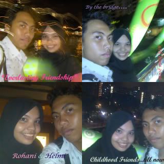 Just yesterday I realized how time pass so fast. I still remembered when Helmi was young, so fair..so quiet. Now he is tanned and notourious but still so clever, he never showed it off. We went to same sec sch and end up in the same class. We see each other grow up and the changes we've made in life. Macam sudah kenal baik buruknyer, latar belakangnyer dan sudah masak dengan perangainyer.Though now, we are from different poly, we still keep in contact. That's how much I realized the value of friendship. He's the longest friend who stays with me.. from young till now...everlasting frienship since childhood. Thanks man..