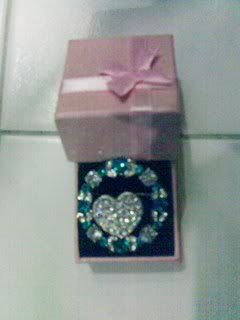 Irwan was so sweet to pick me up after Sastera meeting yesterday evening. Ingat penat sangat, tak nak ambil. Haha. We went to Causeway Point in search of a present for his mum for her 46th birthday which was on 26th Dec. I actually bought a big brooch already but it seems incomplete without a small one. Finally, we found a heart shape brooch which matches the one I bought. When I place both of it inside a cute little pink box, I said.. "Awak!! Lawa nyer.. Macam kite nak gituk.. A lahai.. lawa lah!!"